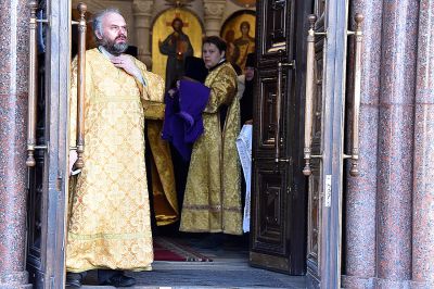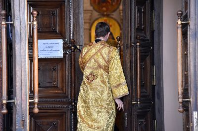 В Храме-Памятнике на Крови владыка Евгений совершил молебен святым Царственным страстотерпцам.
