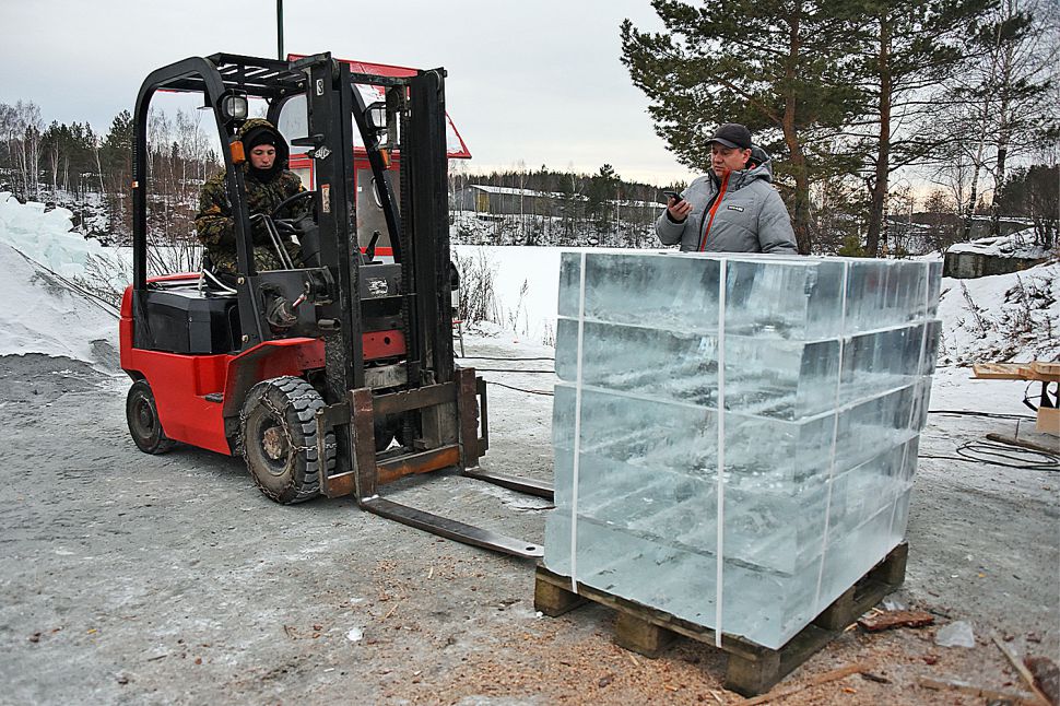 Сегодня наш фотокорреспондент Борис Ярков побывал в поселке Северка. Здесь на местном карьере «добывают» основной строительный материал для ледяных скульптур. За смену рабочие выдают «на гора» 60 кубометров льда.