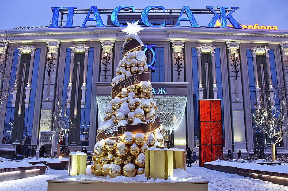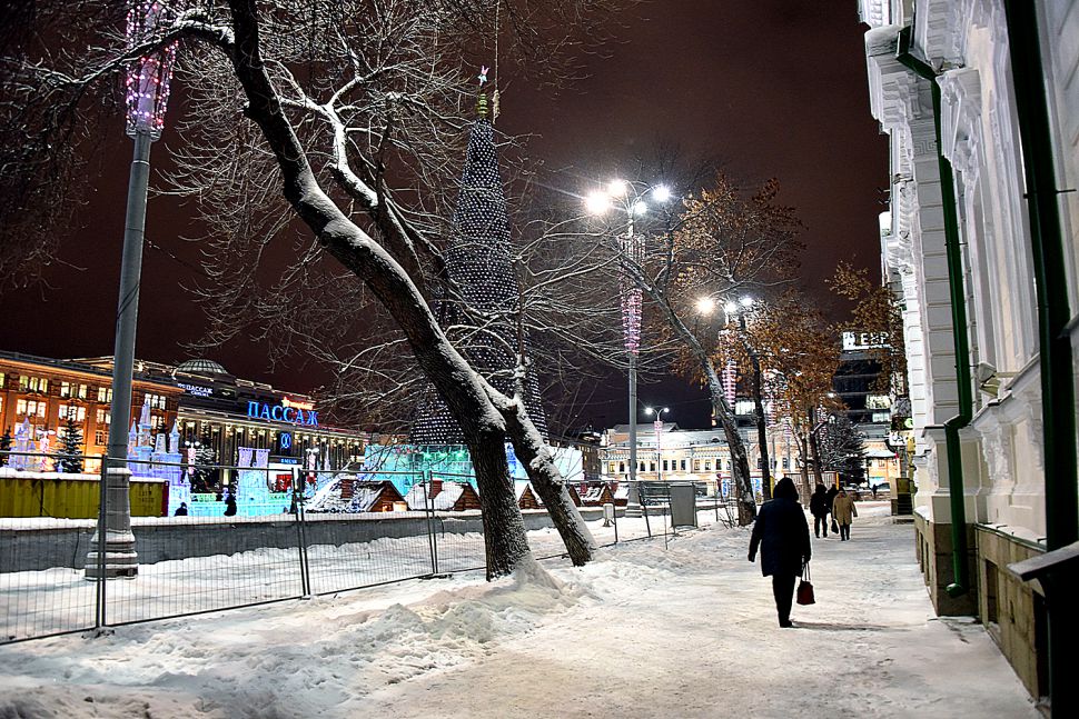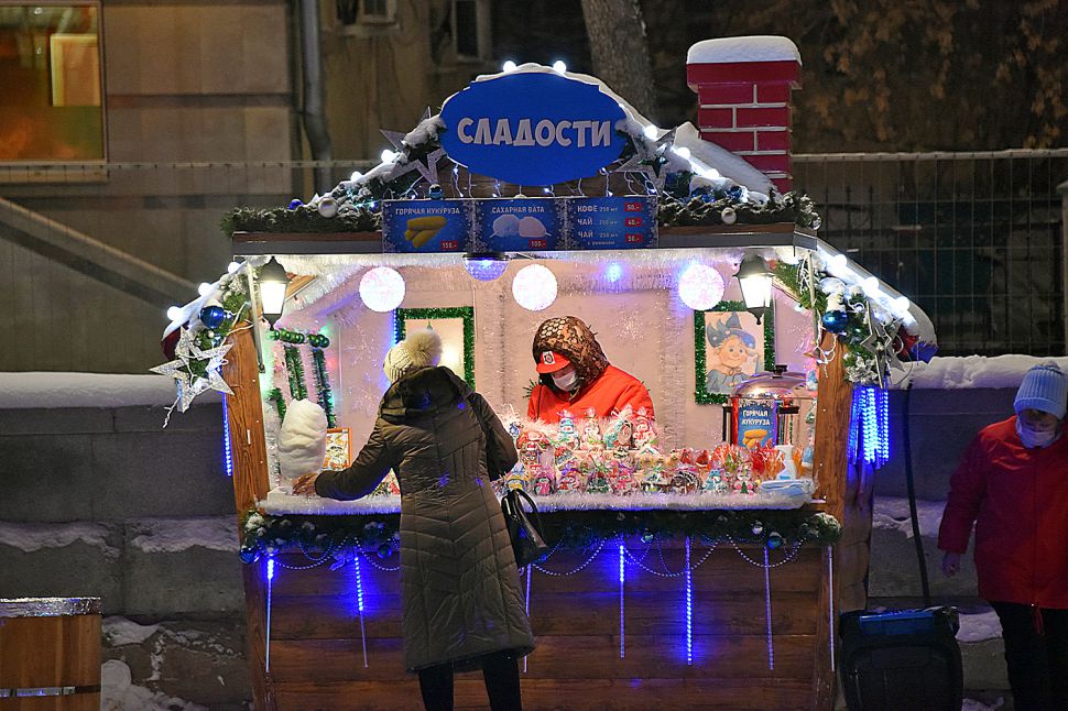 В этом году из-за пандемии здесь нет развлечений, только елка, ледяные скульптуры и киоски с горячими напитками.
