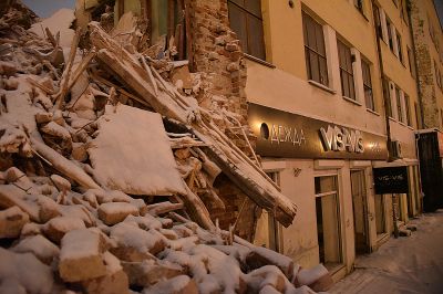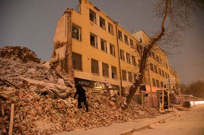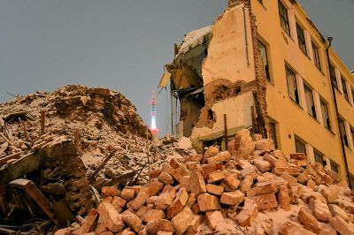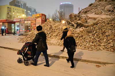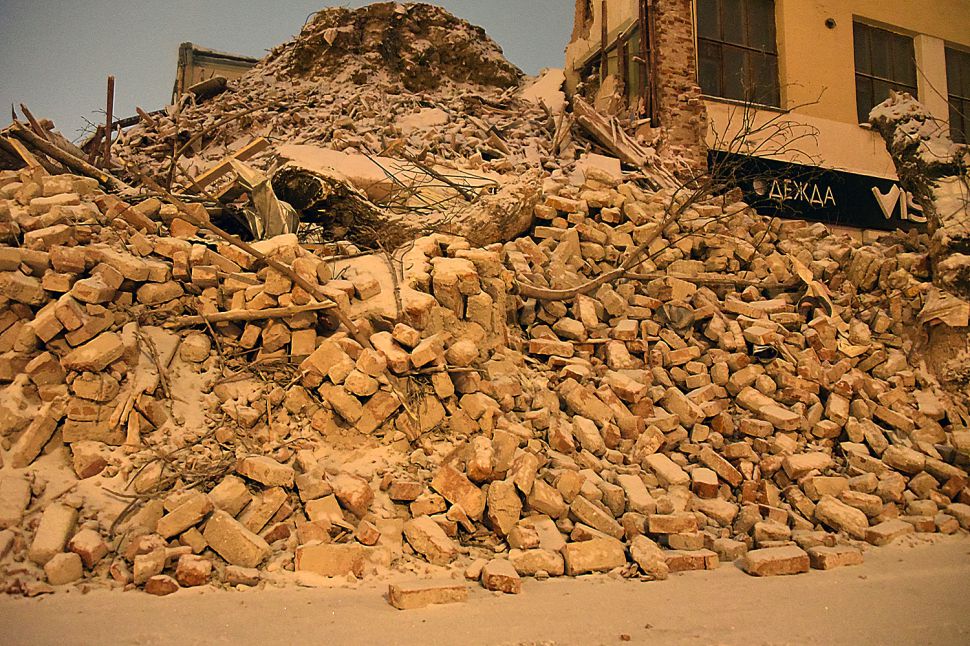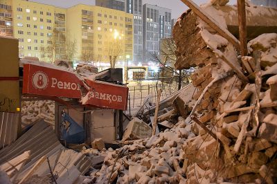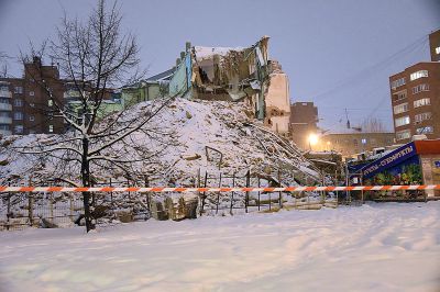 Сегодня вечером при сносе здания ПРОМЭКТа на улице Декабристов произошло обрушения стены. Обломки сооружения рухнули на тротуар, а также на овощной киоск. При этом пострадала линия электропередачи. На место ЧП выезжали сотрудники МЧС, полиции и городских служб.