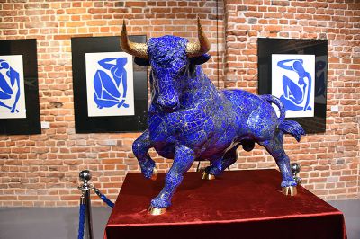 Проект «Коррида» – это один из амбициозных проектов Камнерезного дома Алексея Антонова, работа над которым заняла семь лет. Впервые в экспозиции представлены полутораметровая фигура танцовщицы фламенко и 300-килограммовая фигура быка, выполненные из драгоценных и полудрагоценных камней и металлов. Третья фигура – тореадора – была выставлена в галерее «Главный проспект» в 2019 году.