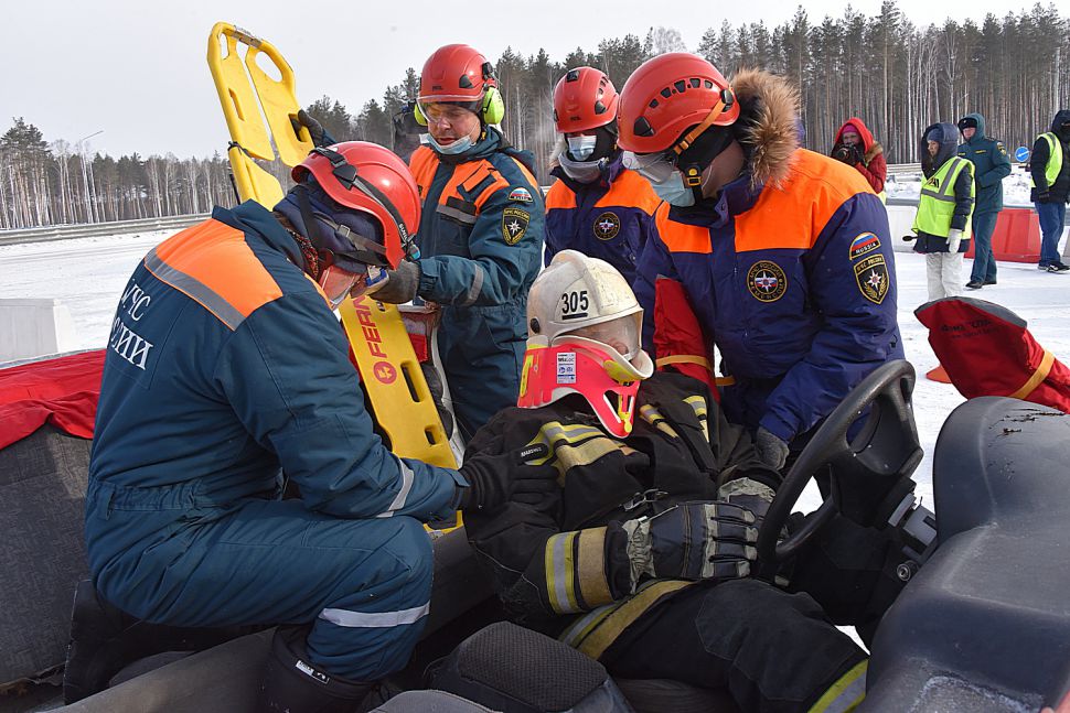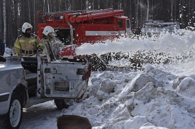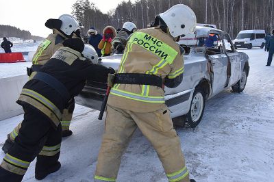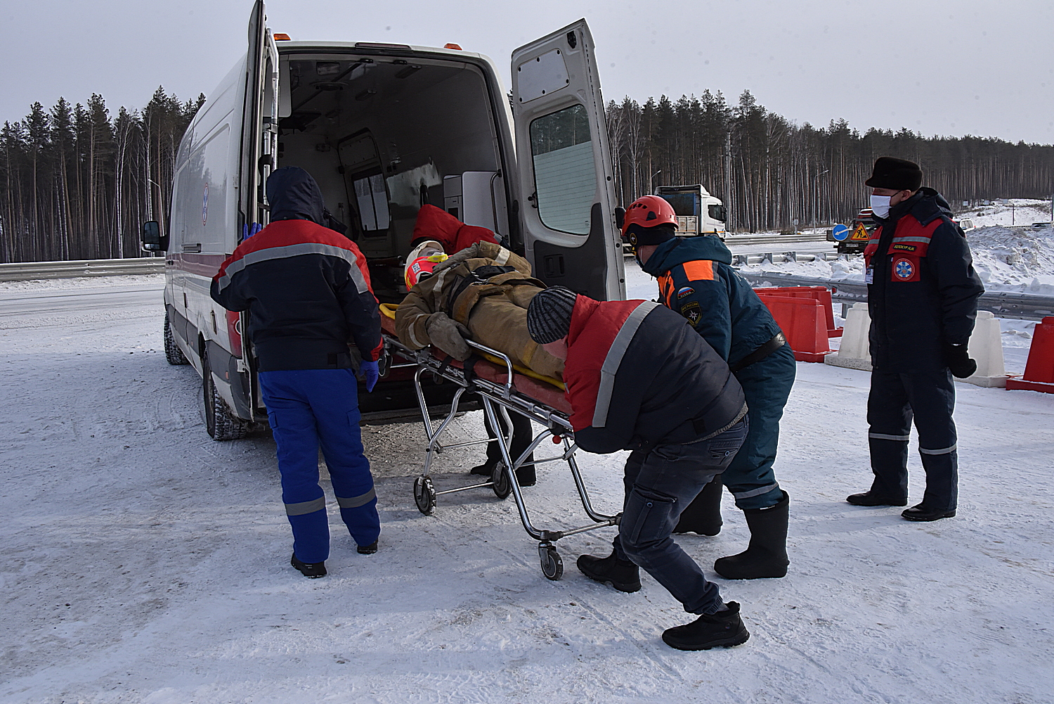 Сегодня на участке Екатеринбургской кольцевой автодороги прошли учения дорожных спасательных служб по ликвидации последствий чрезвычайных ситуаций. И все это при двадцатиградусном морозе.