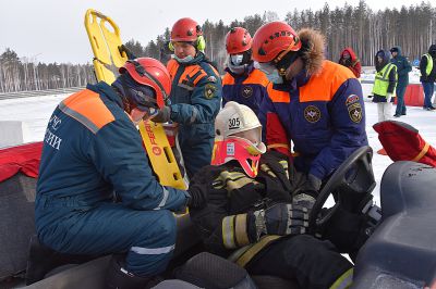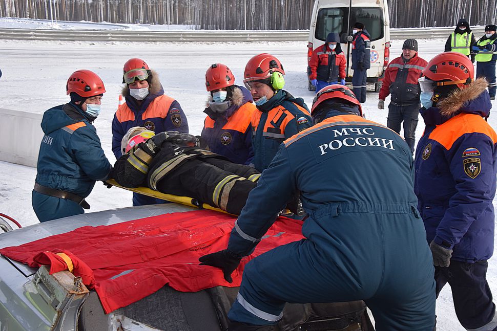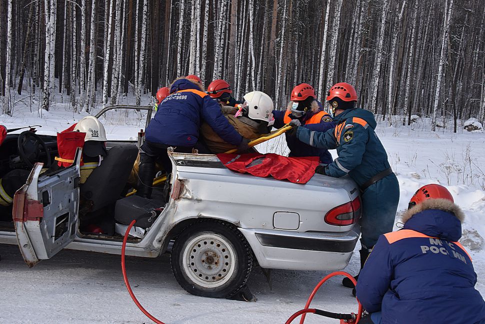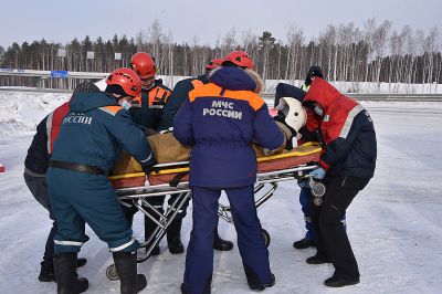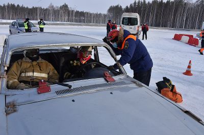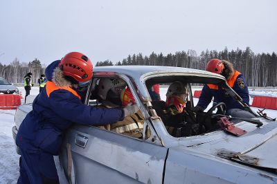 По легенде учений произошло опрокидывание легкового автомобиля из-за снежных заносов. Пострадало два человека. Спасательные службы извлекли пострадавших из машины, срезав крышу. Пострадавших эвакуировали на скорой.