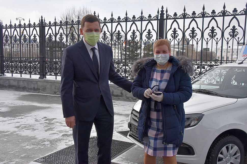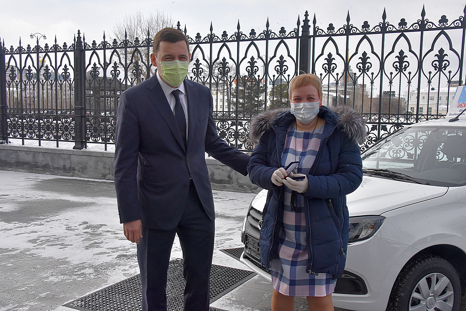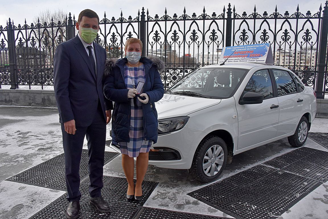 Сегодня Евгений Куйвашев поздравил лучших женщин-животноводов с 8 Марта. И лучшей доярке подарил автомобиль