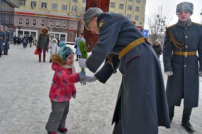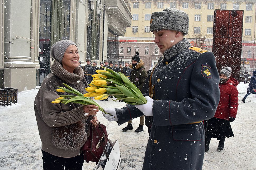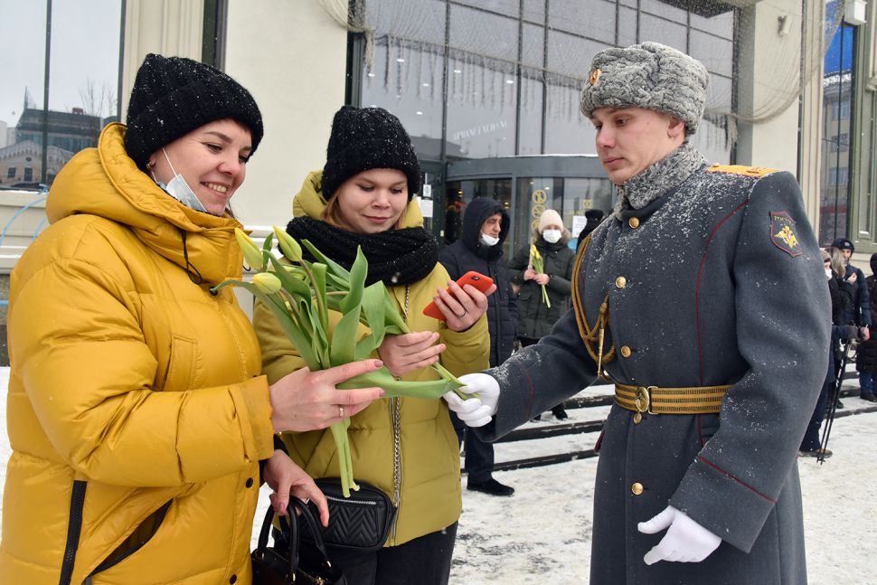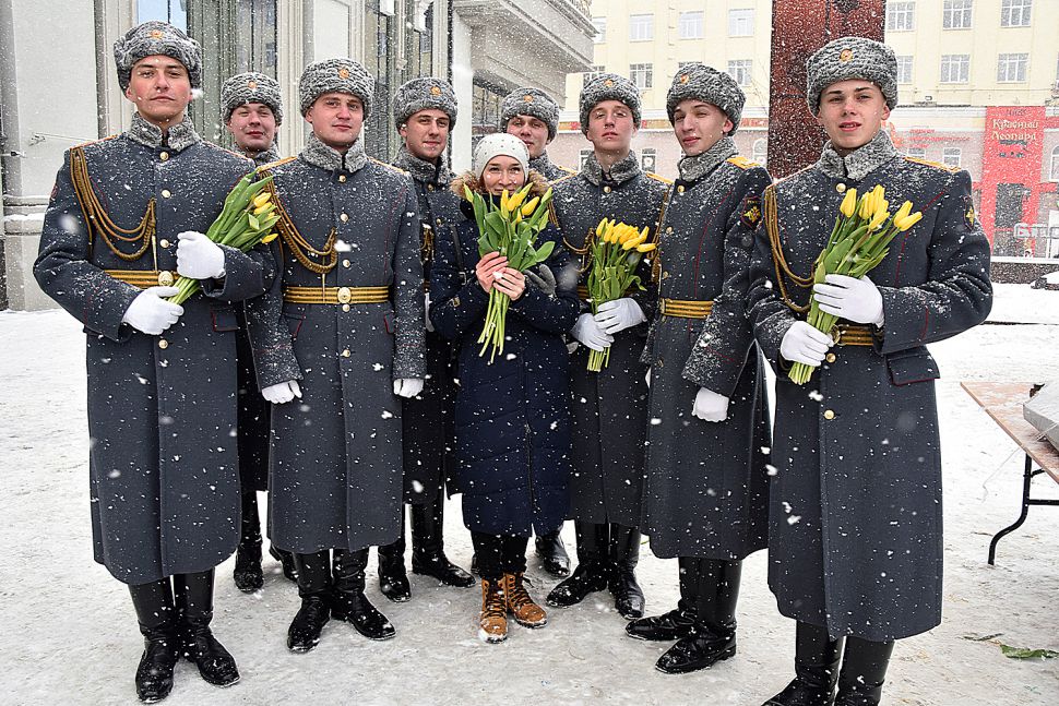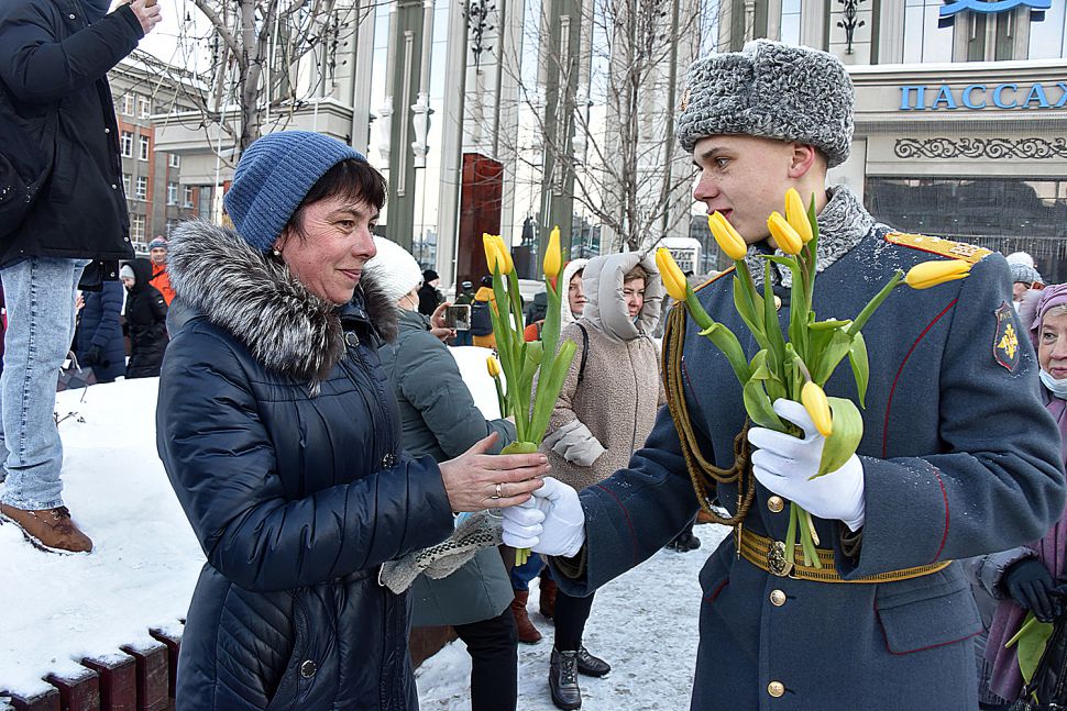 Фоторепортаж: военные подарили женщинам Екатеринбурга цветы и улыбки