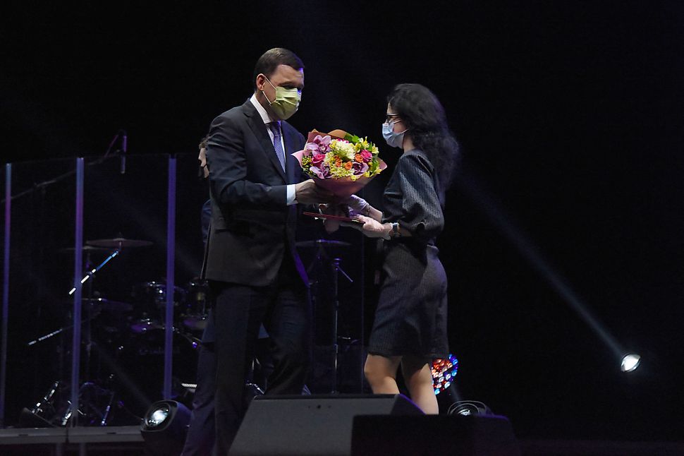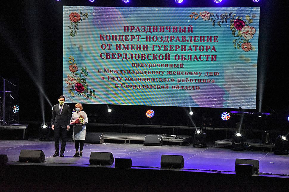 Глава региона Евгений Куйвашев перед началом концерта наградил медиков за высокий профессионализм почетными грамотами и благодарственными письмами. В частности, старшая медицинская сестра отделения противоопухолевой лекарственной терапии Свердловского областного онкологического диспансера Нэлли Алекперова из рук губернатора получила знак отличия «За заслуги перед Свердловской областью» III степени.