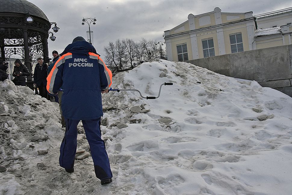 В Екатеринбурге молодой человек, катаясь на электросамокате, перелетел через ограждение и провалился под лед Городского пруда. Течением его вынесло в технический люк плотины.