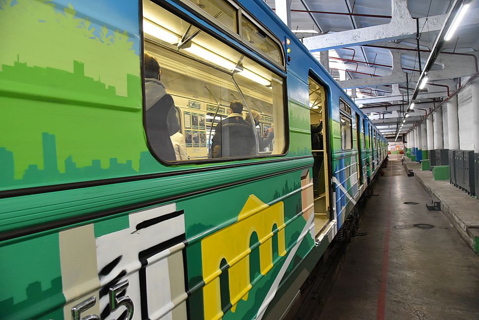 Пассажиров метро ждет сюрприз – узнаваемые объекты уральской столицы изображены на бортах вагонов – это Белая башня, железнодорожный вокзал, мэрия, башня Исеть, парк Маяковского и другие. Рисунки сделаны в стиле граффити.