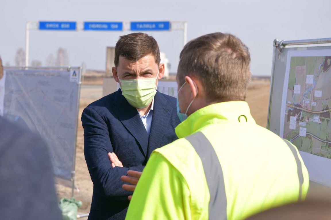 Губернатор проверил, как расширяют трассу Екатеринбург – Тюмень