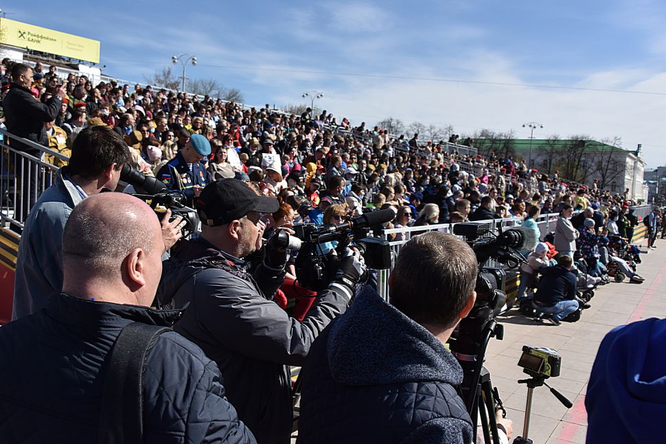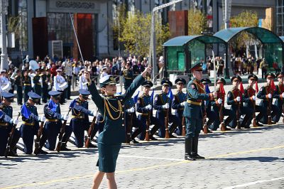 В ходе генеральной репетиции парада по главной площади Екатеринбурга в строю торжественным маршем прошли около 20 парадных расчетов, всего 2,5 тысячи военнослужащих. Впервые в параде войск гарнизона примут участие воспитанники Екатеринбургского суворовского училища и девушки-курсанты Уральского института МВД.