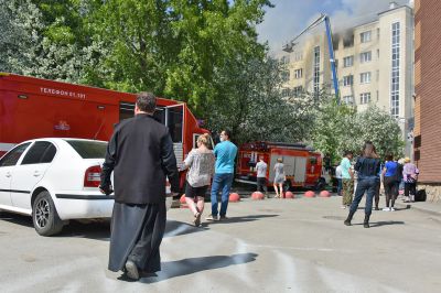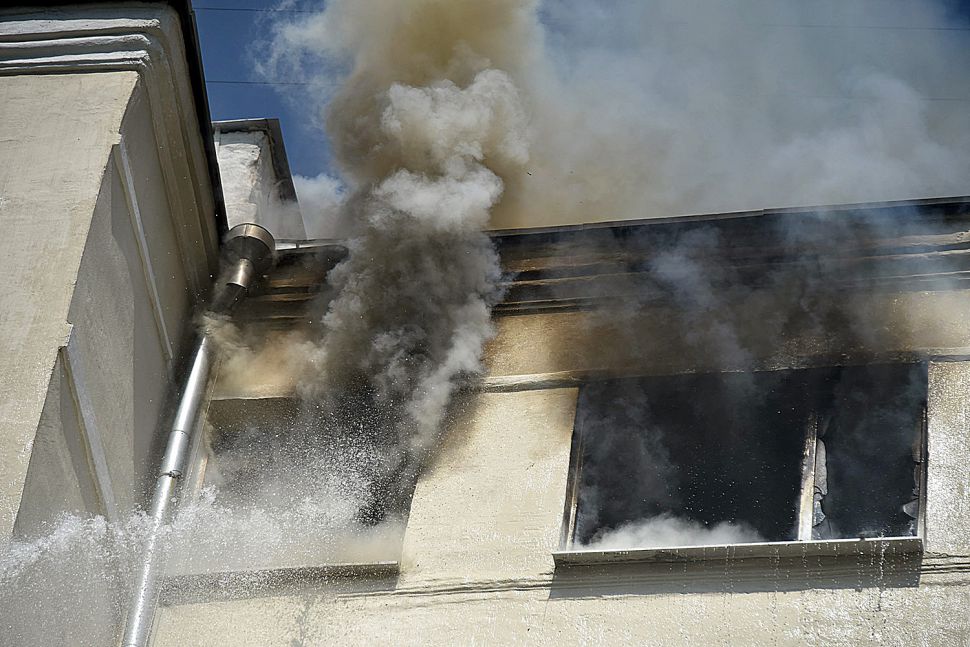 Дымом заволокло центр города. С крыши огонь распространился на одну из квартир.