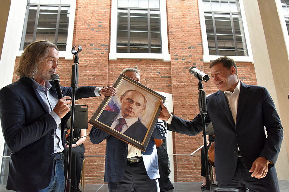 Никас Сафронов поблагодарил губернатора за поддержку культурных проектов в регионе и передал в дар Свердловской области портрет президента России Владимира Путина.