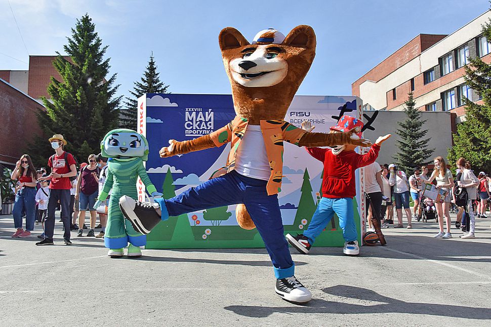 На точках старта и финиша можно было познакомиться с талисманами Универсиады. Хити, Ягги и Кедри фотографировались со всеми желающими и провели разминку перед началом прогулки.