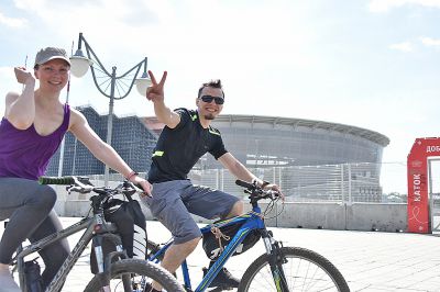 Финишировали велосипедисты там же, где и стартовали – у «Екатеринбург-Арены», где и побывал наш фотокорреспондент Борис Ярков.