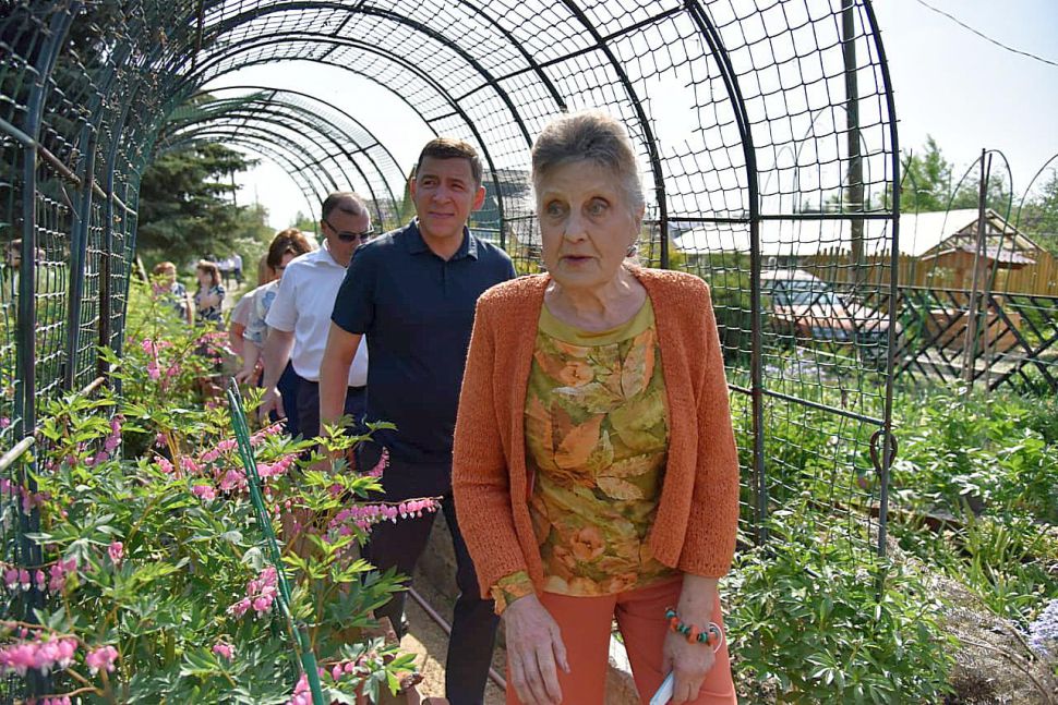 Надежда Локтионова и председатель «Луча» Надежда Шурмилёва провели для Евгения Куйвашева экскурсию по территории сада. Они показали губернатору местную достопримечательность — участок Людмилы Черкасской, которая собирает свою уникальную коллекцию редких для Урала растений много лет. Это и клематисы, джефферсония, глауцидиум, водные растения и хвойные растения Дальнего востока и Японии.