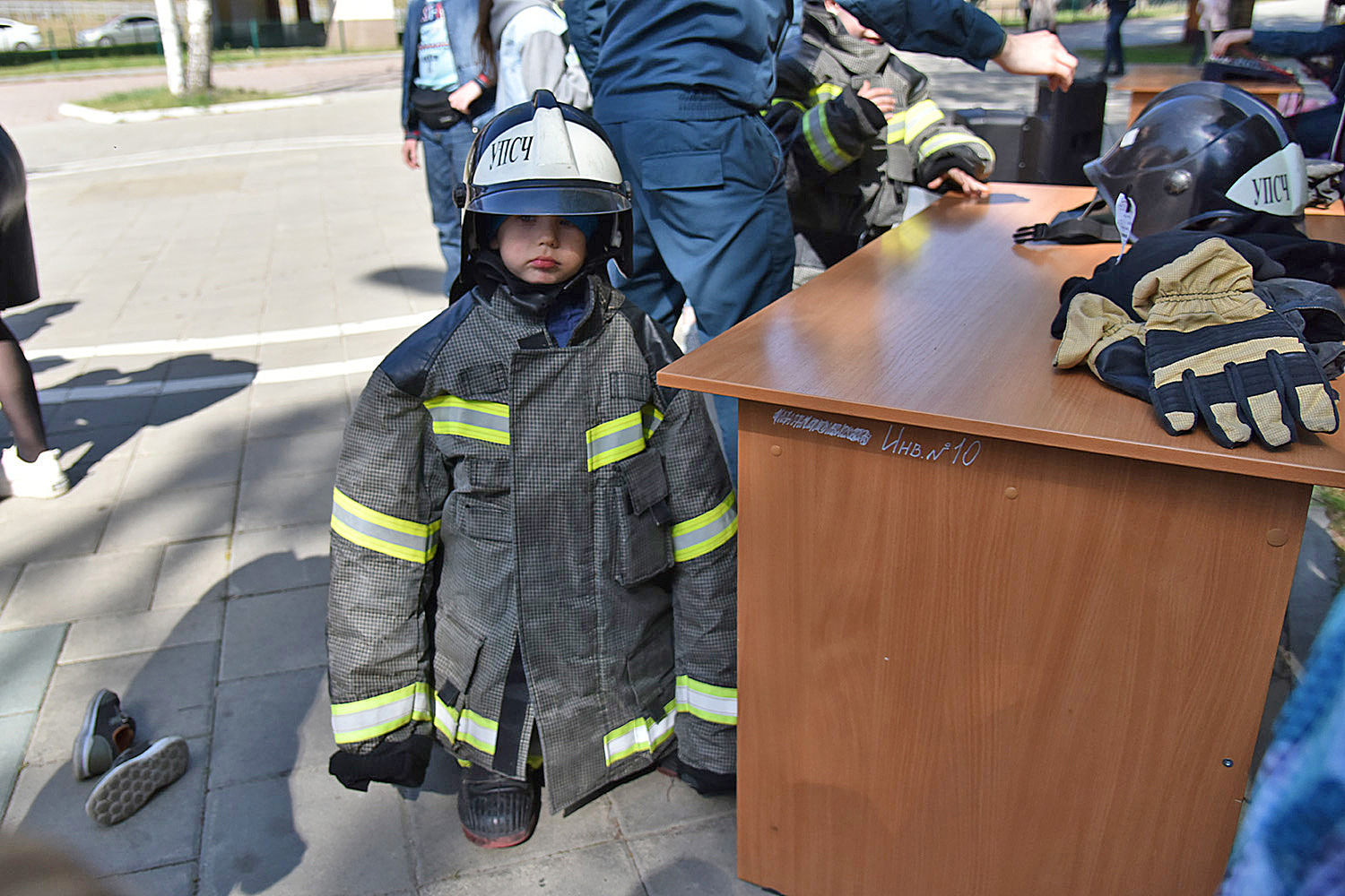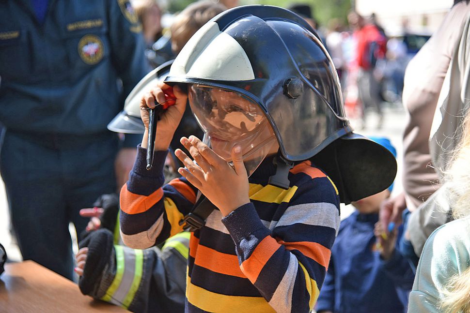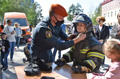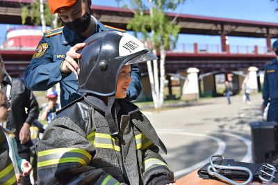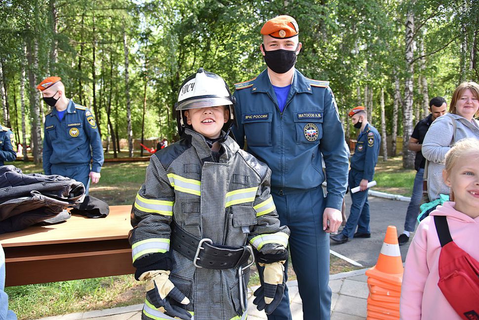 По соседству с сотрудниками госавтоинспекции расположились пожарные. Здесь юные уральцы могли надеть на себя настоящую боевую форму огнеборцев.