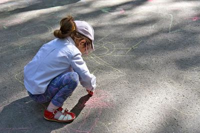 Это дворовые игры, которые были популярны несколько поколений назад, рисование мелками на асфальте, неформальный street-спорт.