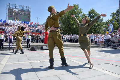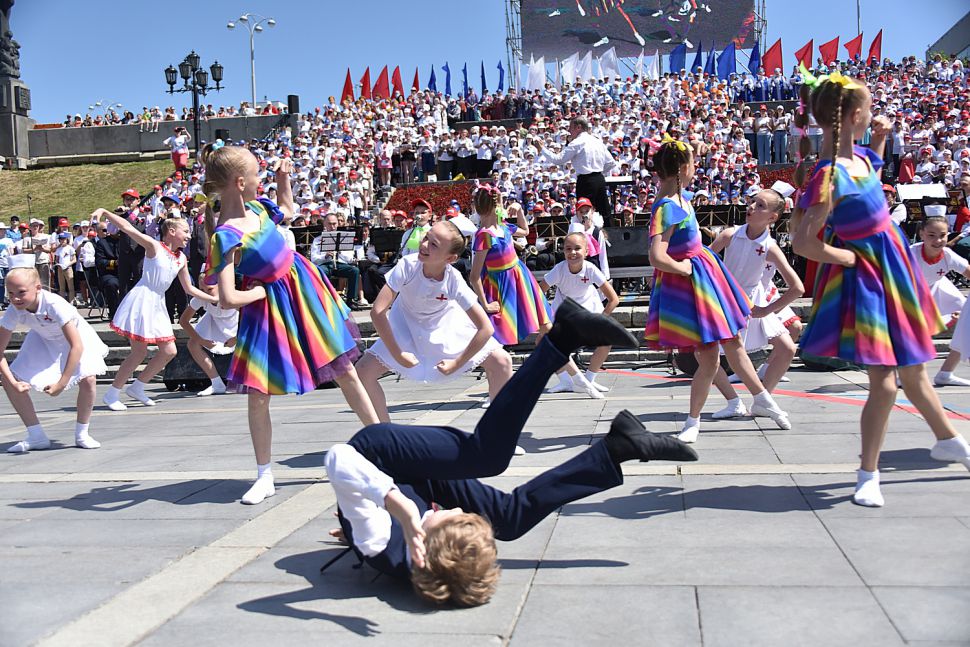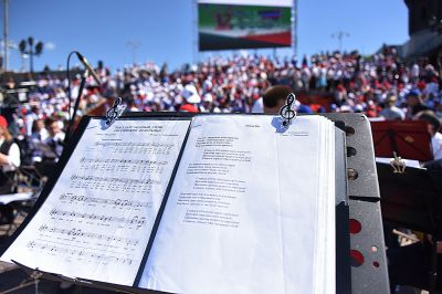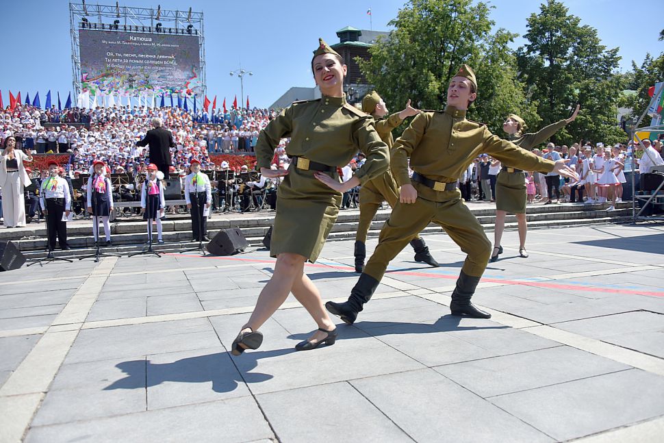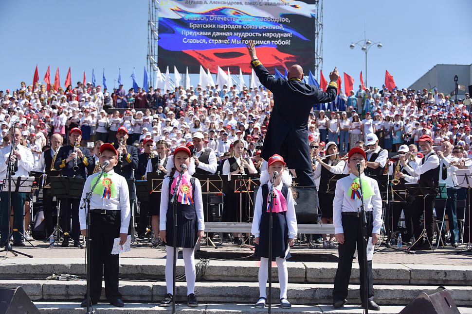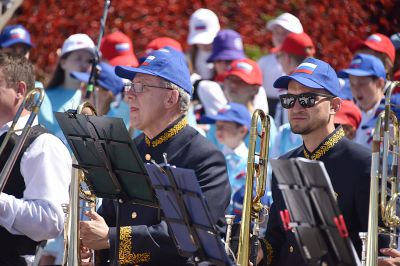 Пению аккомпанировал сводный духовой оркестр под управлением Александра Павлова.