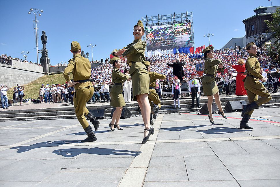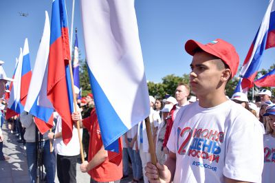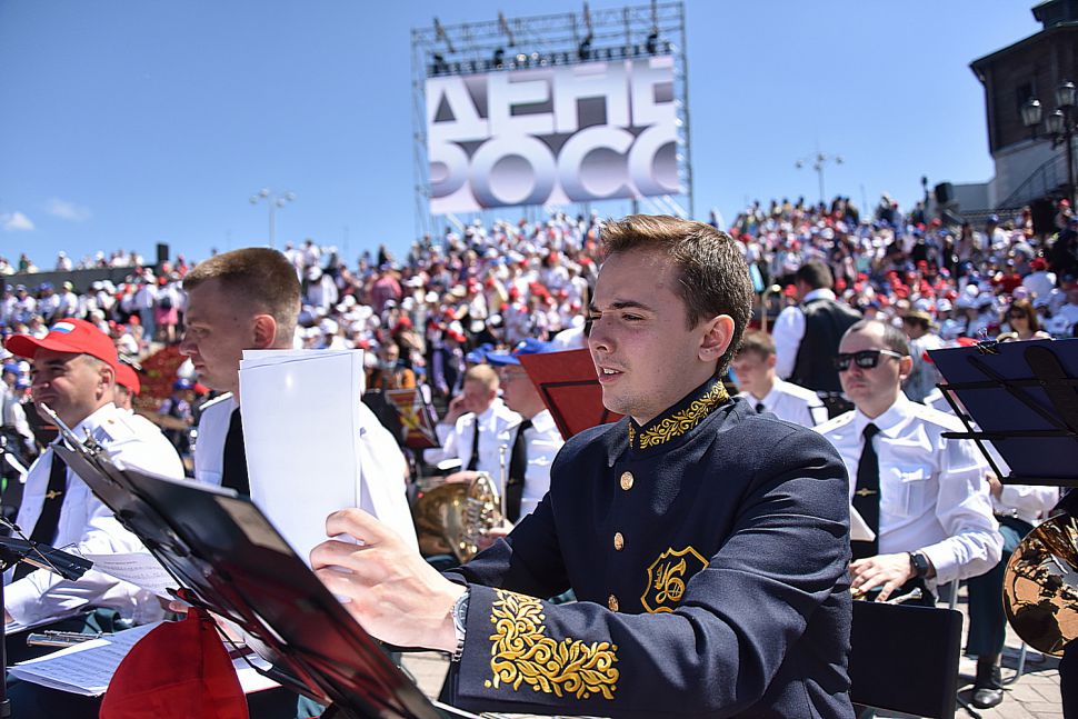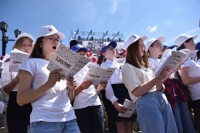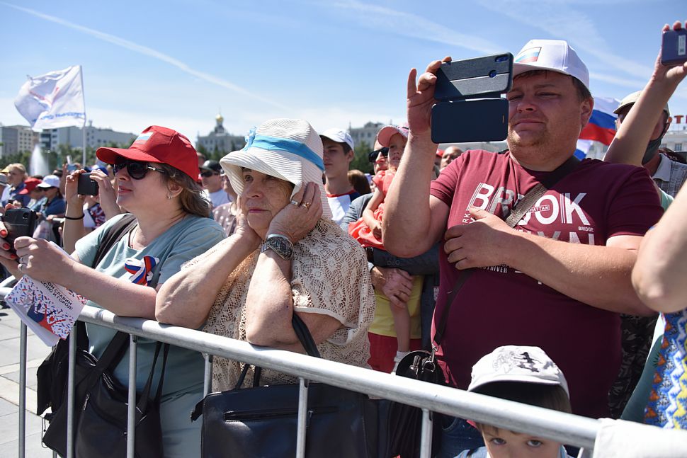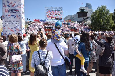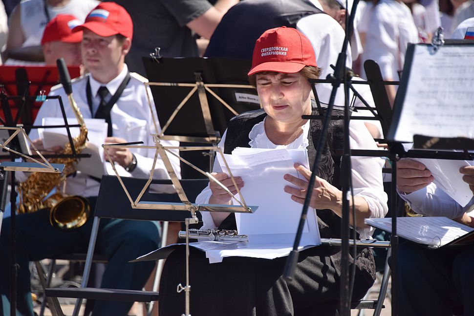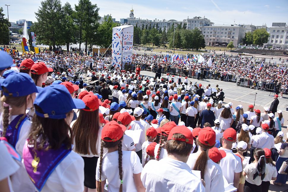 Фоторепортаж: в День России уральцы громче всех подпевали гимну страны