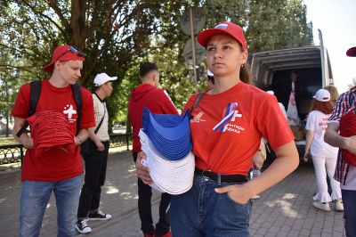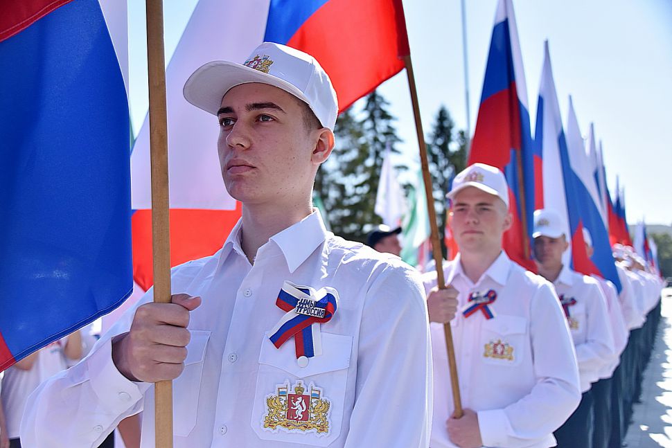 Утром у Дома правительства состоялось вручение флагов России 70 добровольческим и патриотическим организациям Среднего Урала.