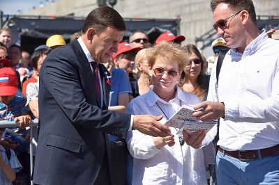 Сегодня губернатор Евгений Куйвашев, не нарушая давней традиции, в Историческом сквере Екатеринбурга присоединился к тысячному хору горожан и гостей уральской столицы, которые в День России поют самые любимые и популярные песни.