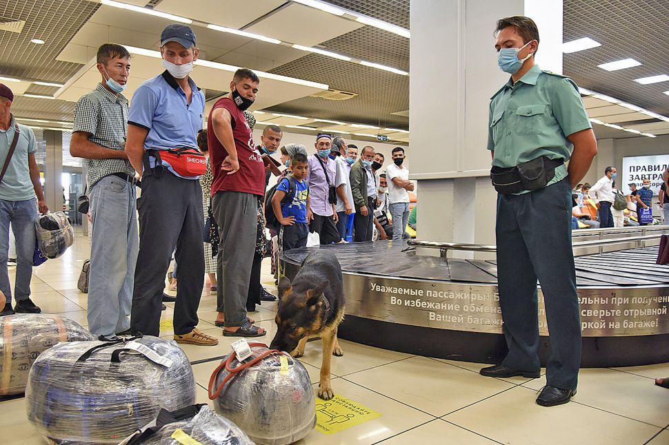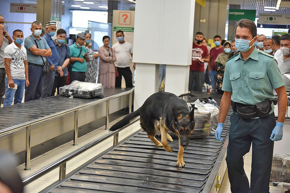 Наш фотокорреспондент Борис Ярков стал свидетелем досмотра багажа пассажиров с участием кинолога и служебной собаки. Самолет прилетел в Екатеринбург из Узбекистана.