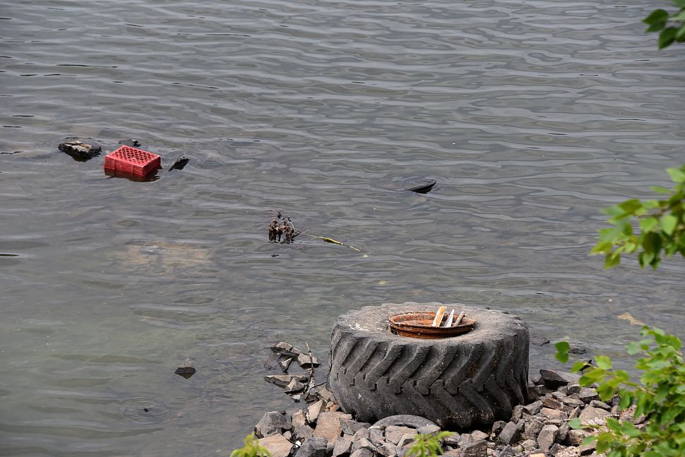 Фоторепортаж: с начала года коммунальщики выловили из Исети 15 тонн мусора