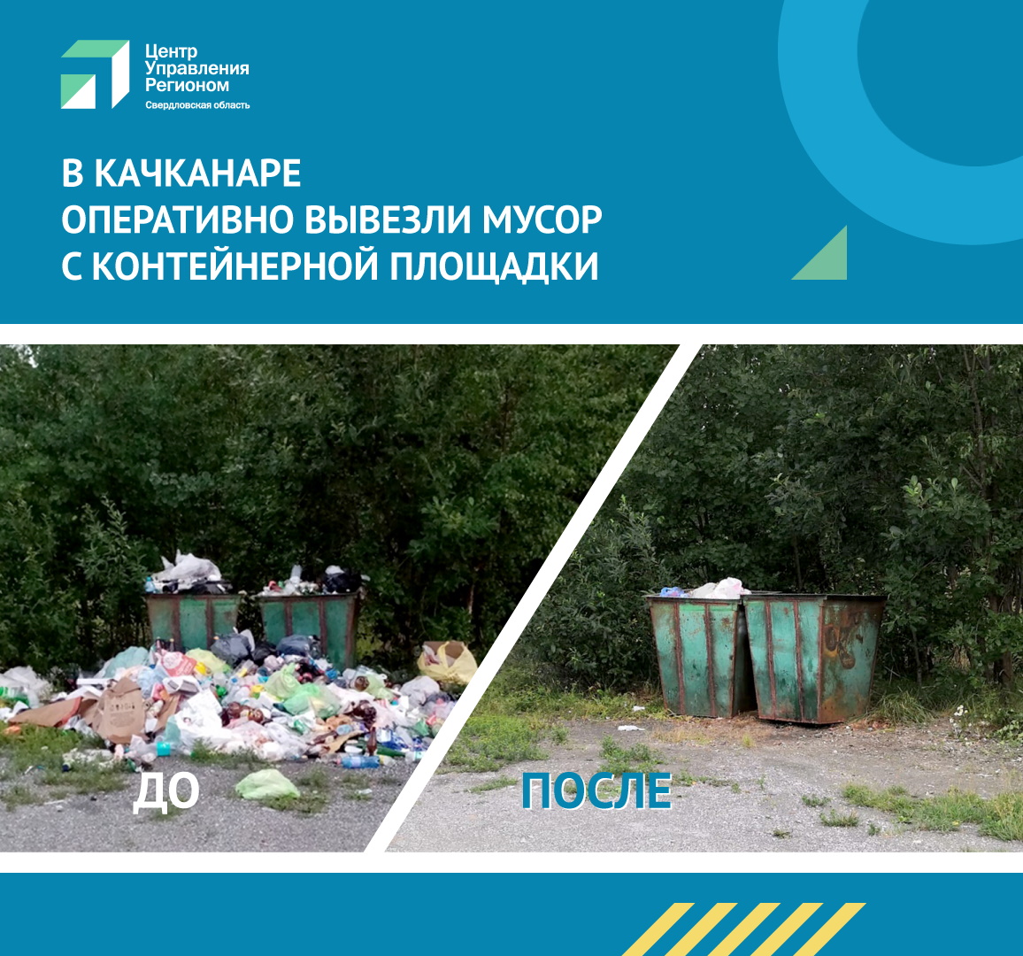 Специалисты Центра управления регионом зафиксировали жалобу и передали ее в компанию, отвечающую за уборку мусора в Качканаре. Сотрудники компании «Рифей» после обращения ЦУР очистили контейнерную площадку. Оперативно проблема была решена.