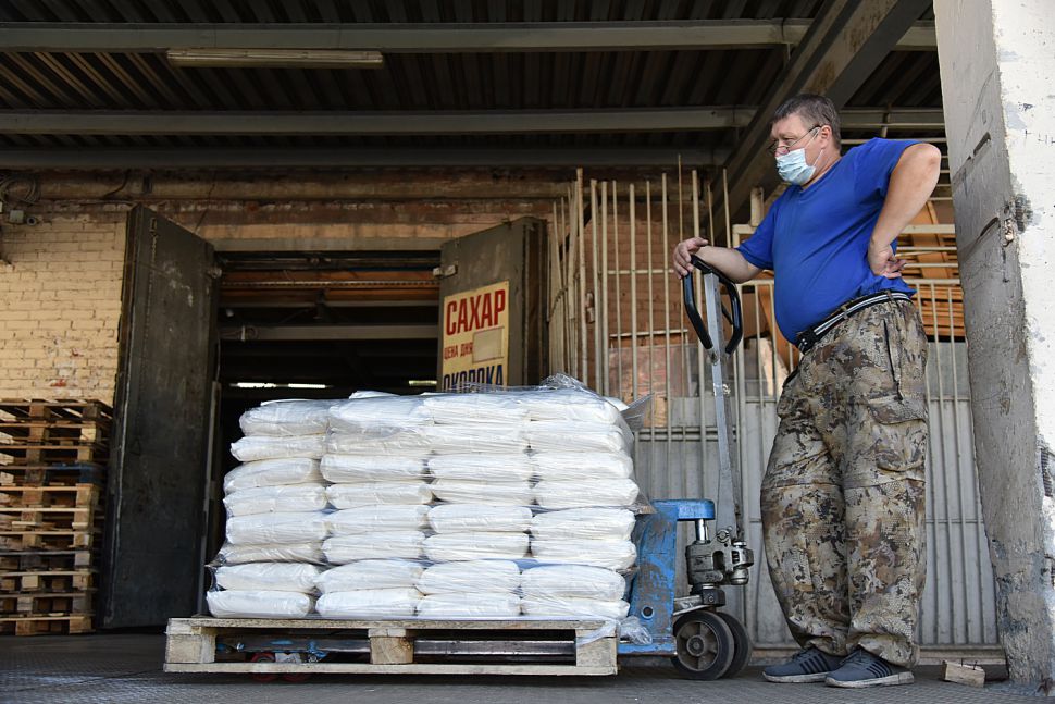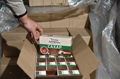 Как выяснилось, стеллажи с расфасованными упаковками сахара на пять и один килограмм заставлены от пола до потолка. Дефицита нет.