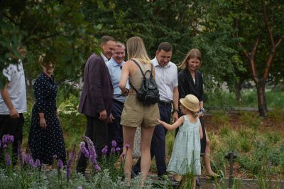 В открытии спортивной площадки и сада приняли участие губернатор Свердловской области Евгений Куйвашев, он даже подтянулся на брусьях, глава Екатеринбурга Алексей Орлов, владелец бизнес-центра «Высоцкий» Андрей Гавриловский, гендиректор «УГМК Застройщик» Евгений Мордовин.