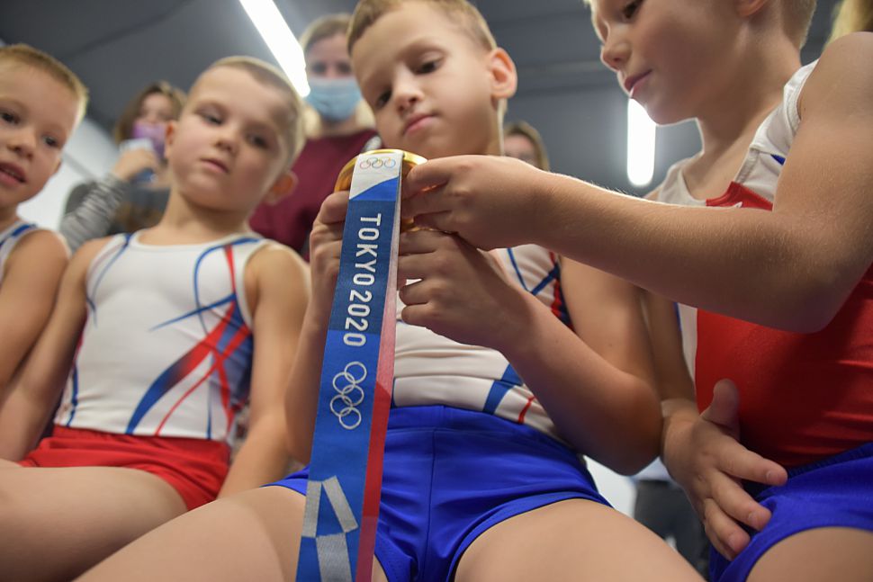 Фоторепортаж: Давид Белявский «подарил» юным гимнастам олимпийское золото