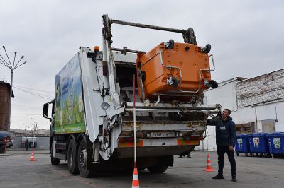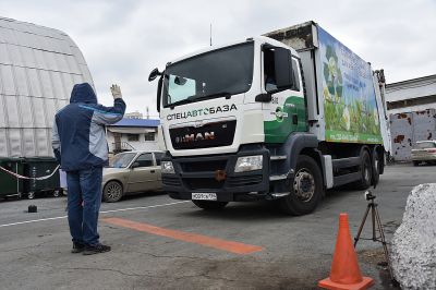 Водители спецтехники для вывоза отходов соревновались в технике точного маневрирования на местности.
