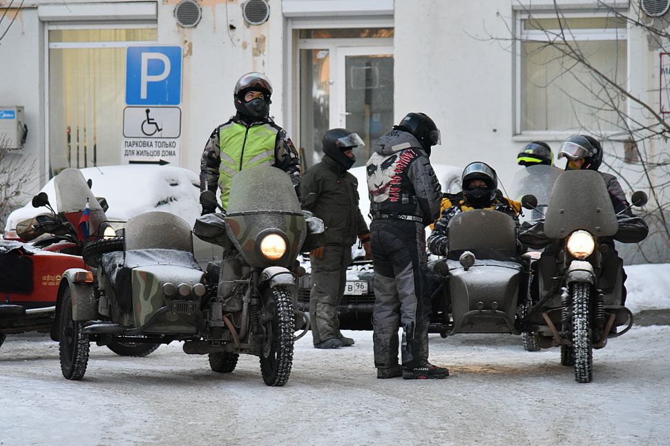 Мотопробег стартовал в Москве 20 ноября, путешественники делали остановки в Нижнем Новгороде, Казани, Ижевске, Перми и теперь в Екатеринбурге, откуда утром выехали в Ирбит.