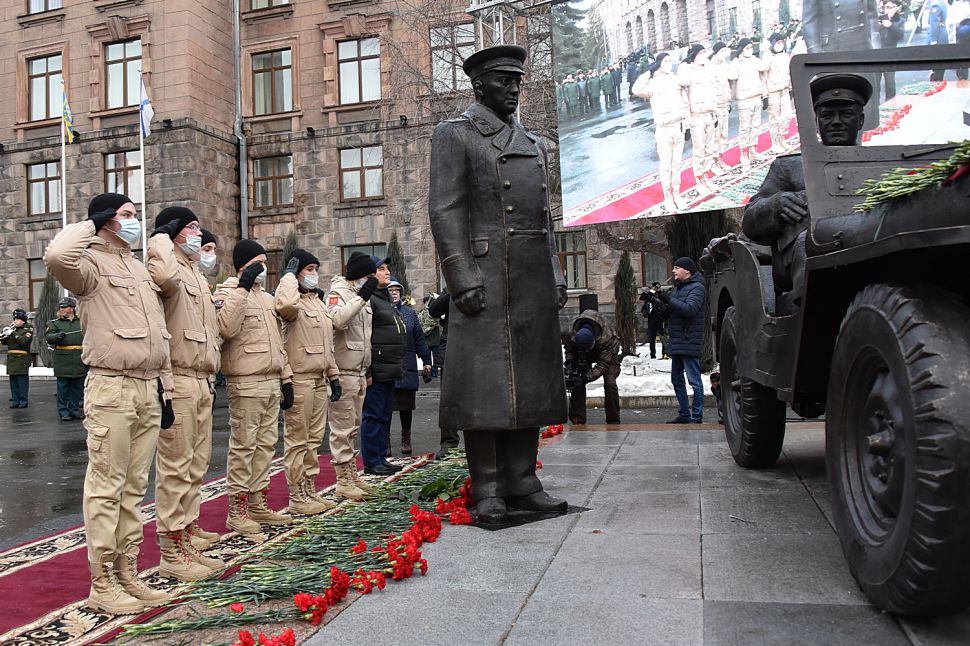 Скульптурную композицию «Встреча маршала Советского Союза Жукова» разместили в центре города у здания штаба уральских военных.
