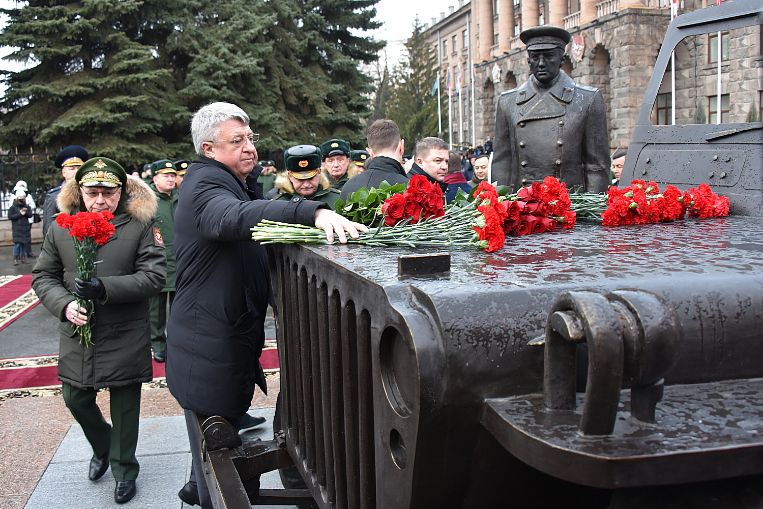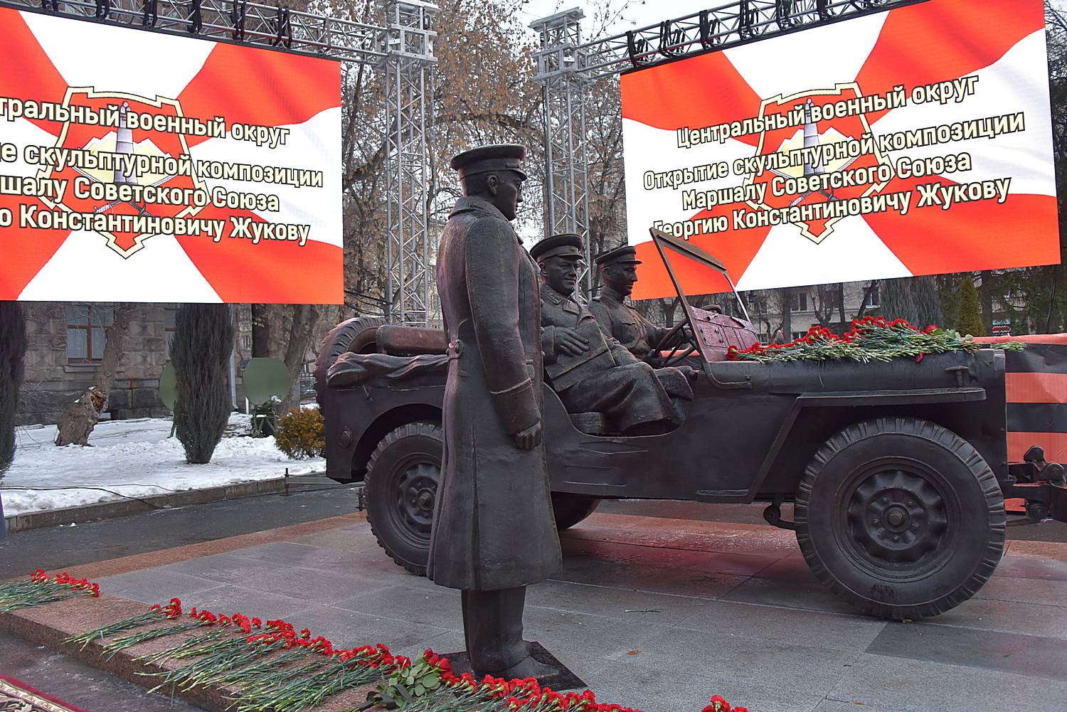 Кстати, у здания штаба уже есть памятнику Жукову и ежегодно к монументу возлагают цветы.