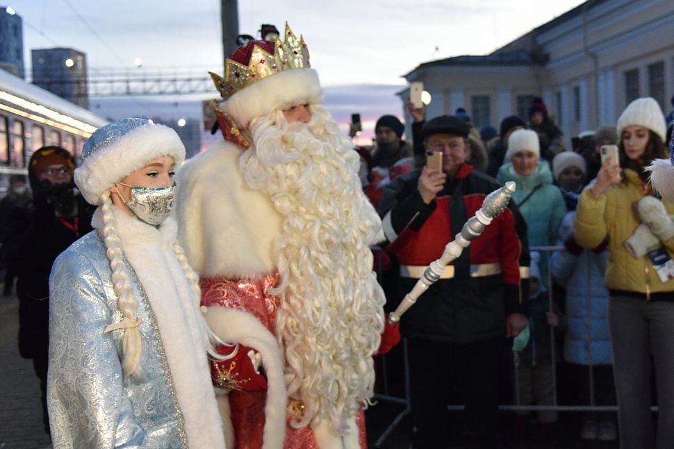 Сегодня утром на железнодорожный вокзал Екатеринбурга прибыл сказочный поезд Деда Мороза.