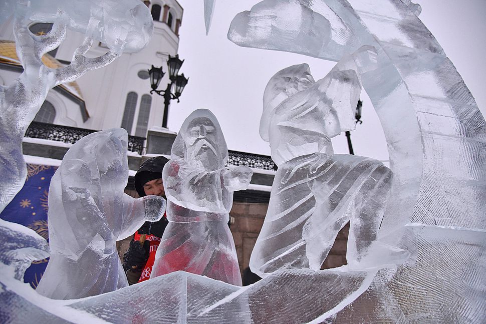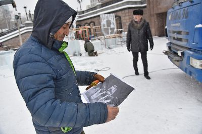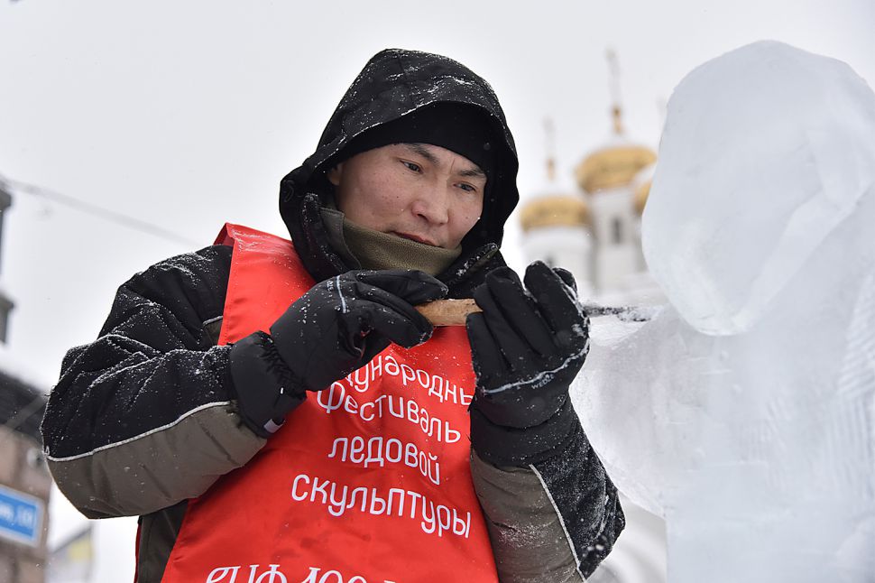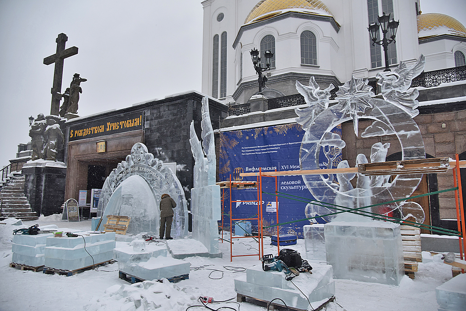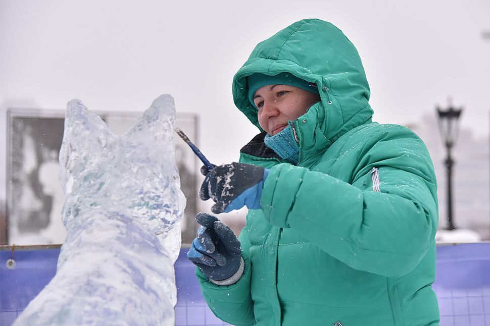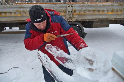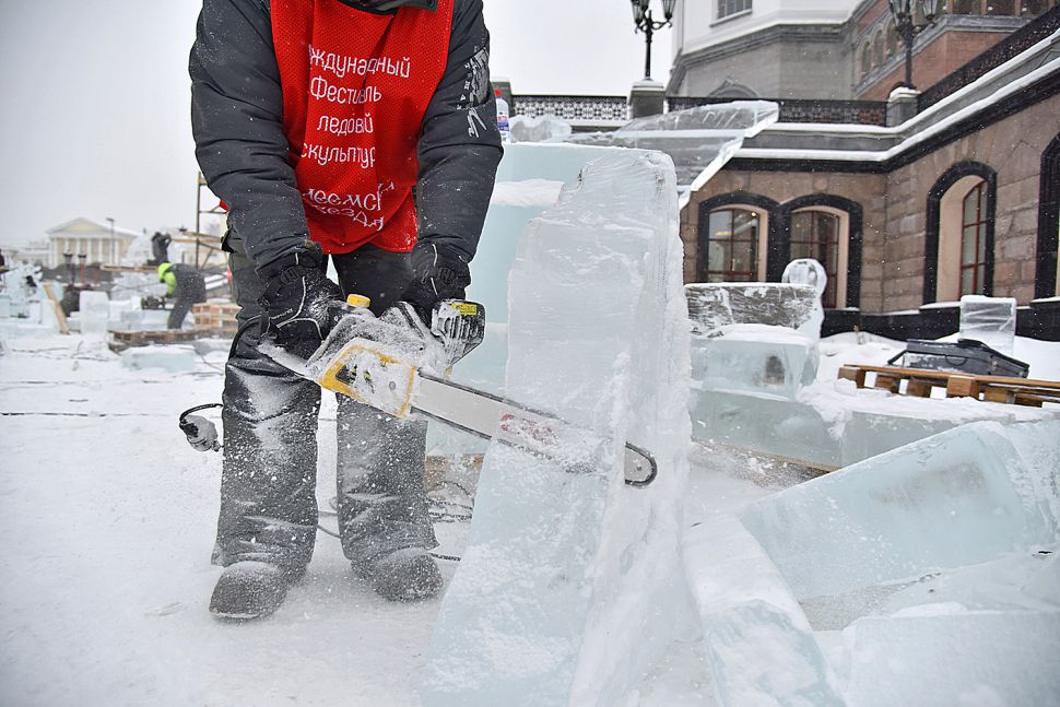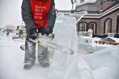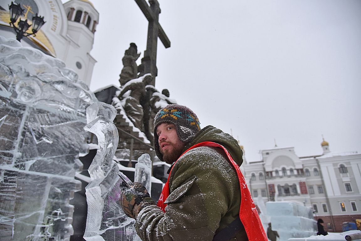 На площадке возле Храма-на-Крови в Екатеринбурге более сорока скульпторов и художников со всей страны приступили к изготовлению ледовых скульптур.