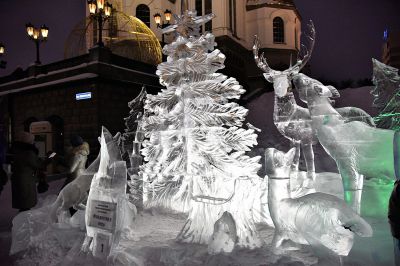 С 7 января у Храма-на-Крови жители и гости Екатеринбурга имеют возможность любоваться ледовыми скульптурами до самой весны, пока фигур не растают.