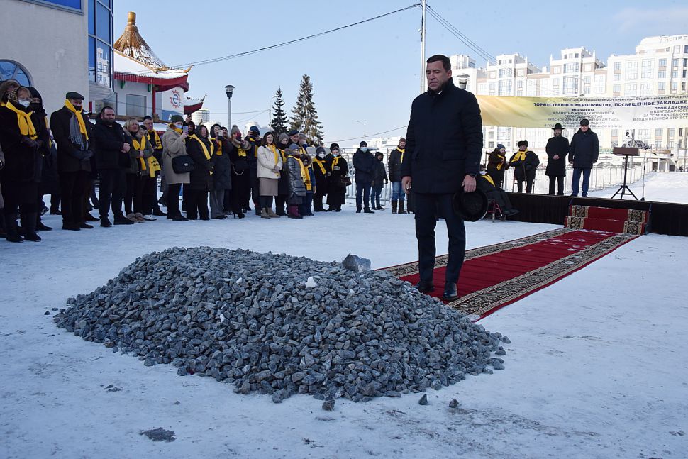 Губернатор Свердловской области Евгений Куйвашев сегодня заложил первый камень в основание монумента в память о жертвах Холокоста и площади Спасения, которые появятся перед синагогой в Екатеринбурге.