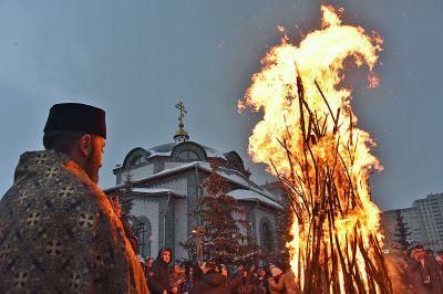 Вечером во дворе храма разожгли большой костер, вокруг которого водили хороводы.