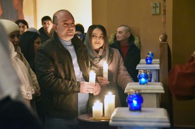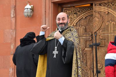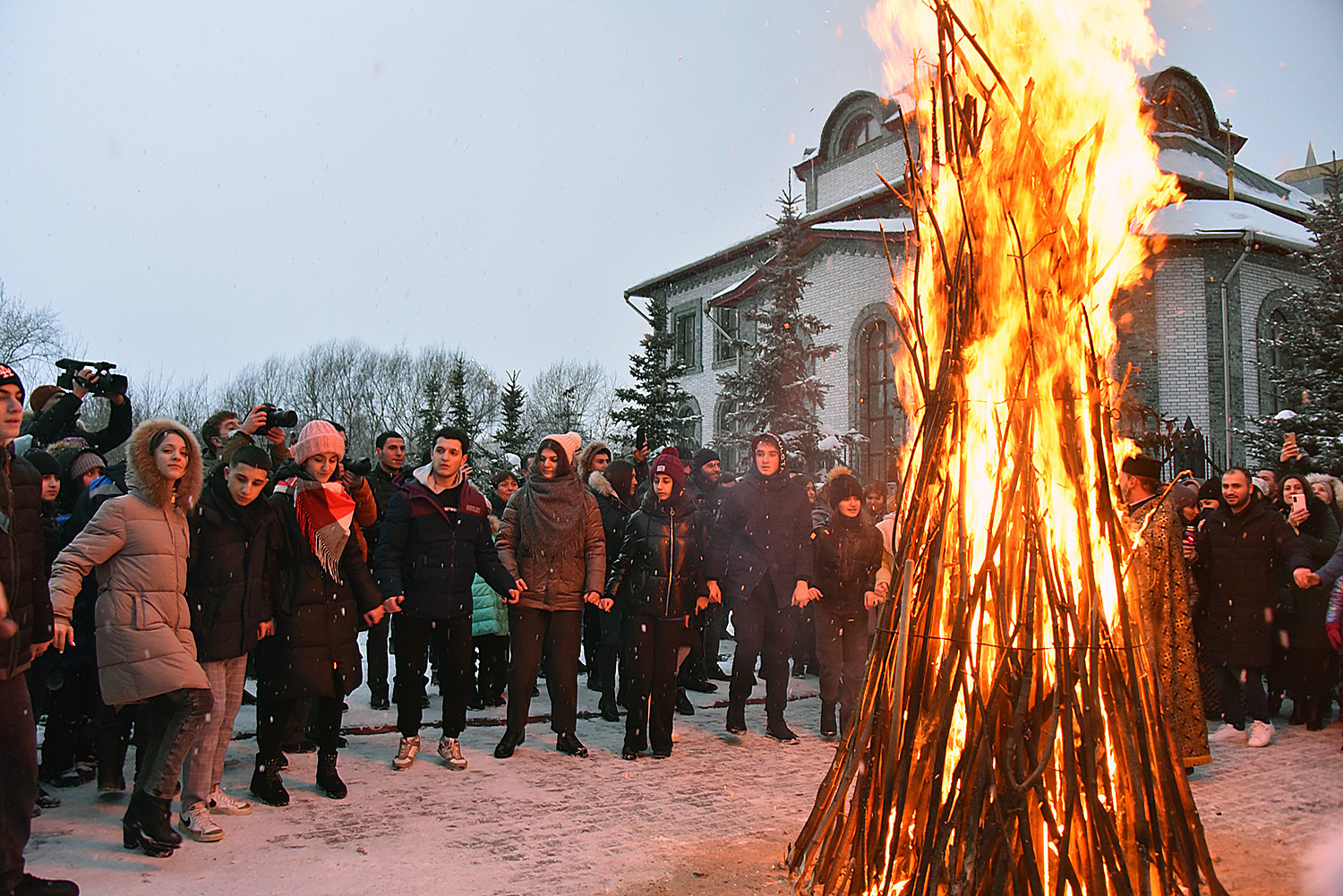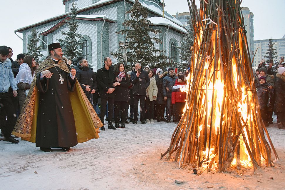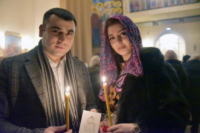После праздничной литургии в церкви Святого Ованеса Карапета был совершен обряд благословения молодоженов. По древней традиции, от благословенной свечи зажигают костер, символизирующий спасительный свет Христа, а молодожены и влюбленные, взявшись за руку, прыгают через огонь.