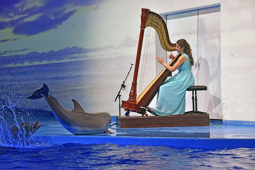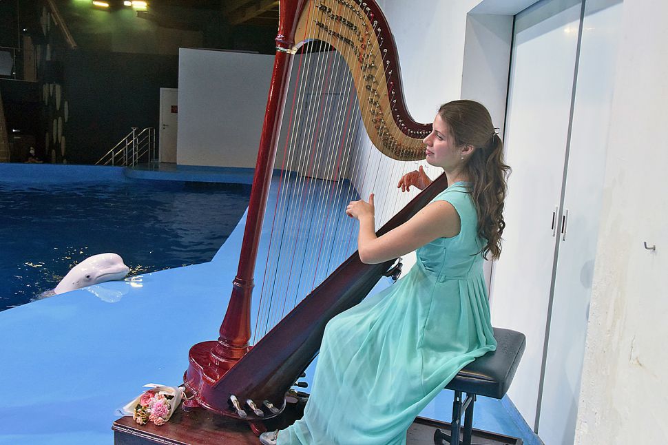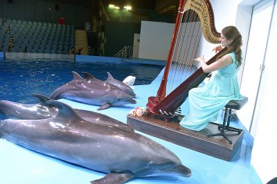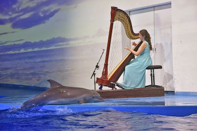 Сегодня в екатеринбургском Океанариум прошел концерт произведений Иоганна Себастьяна Баха и его современников на арфе для дельфинов и полярных китов.