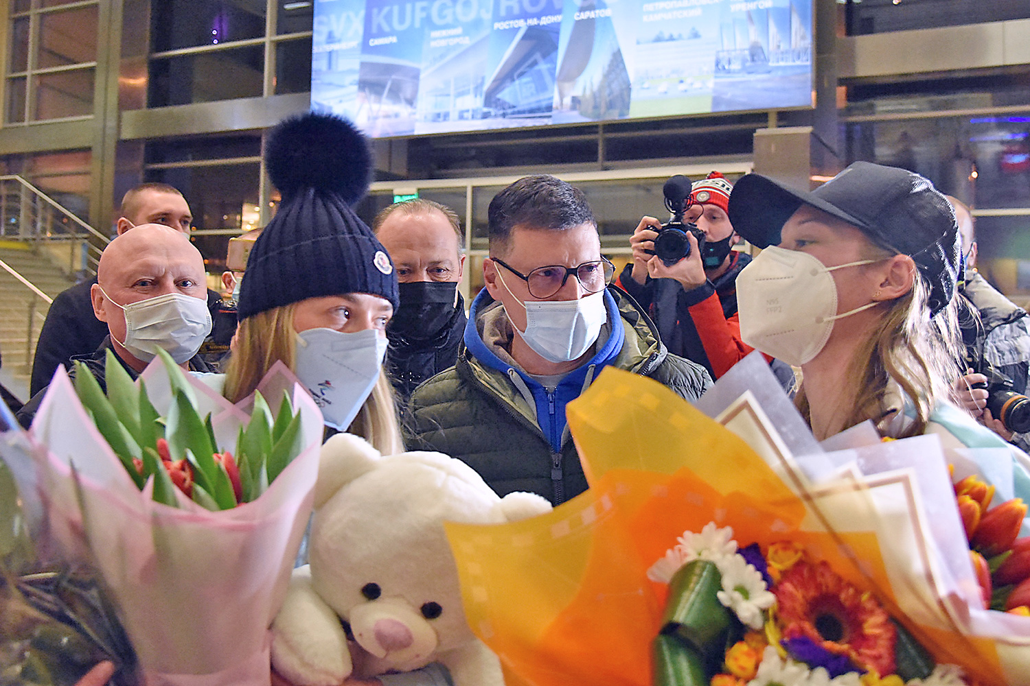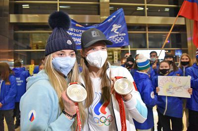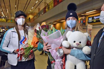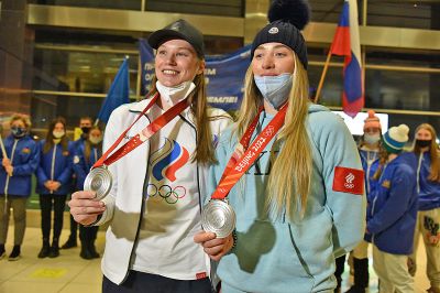 Сегодня ночью в Екатеринбург прилетели серебряные призеры Олимпийских игр в Пекине Светлана Миронова и Ирина Казакевич.