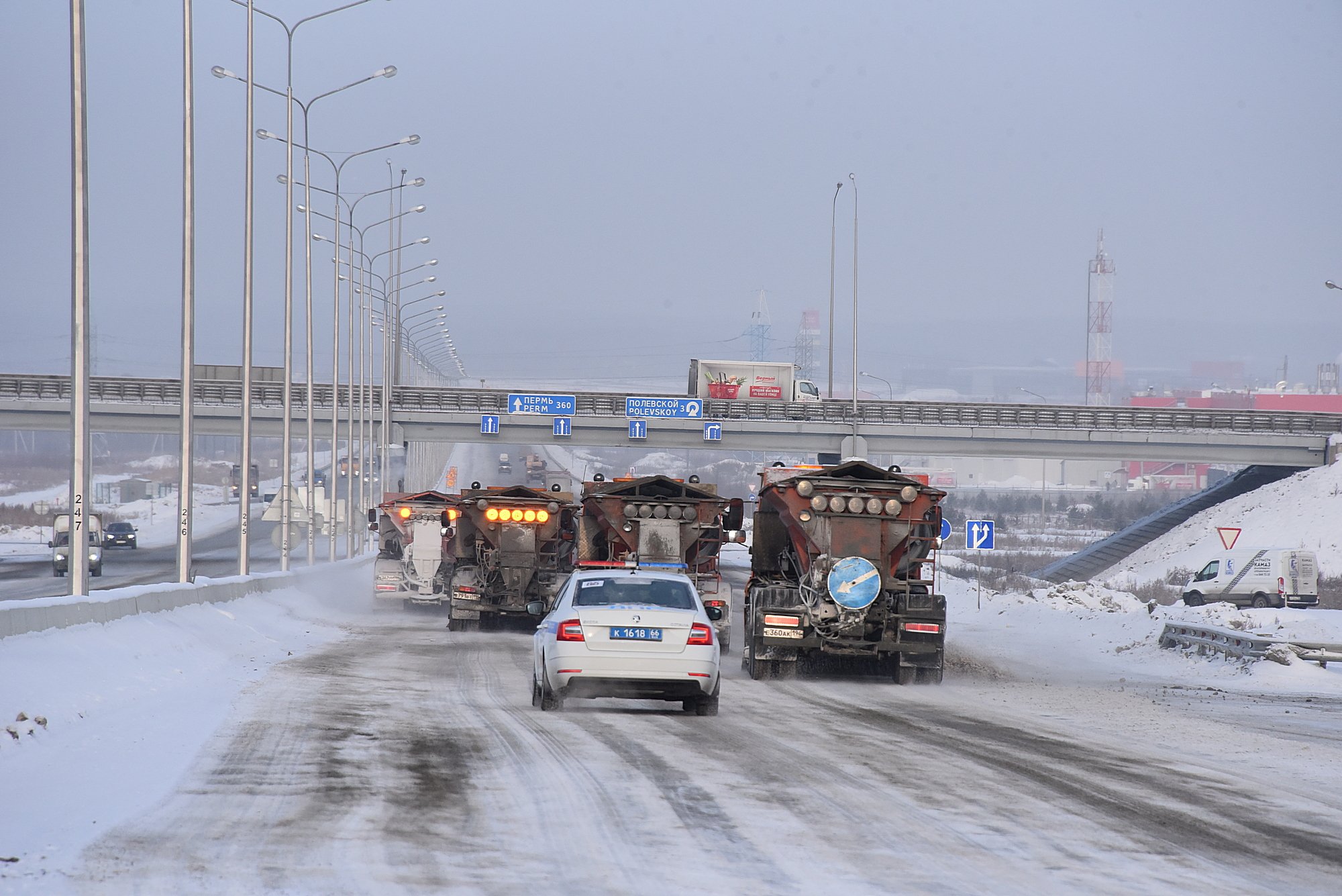 Как сообщили синоптики, на дорогах Свердловской области за ночь выпала полуторамесячная норма осадков. Последствия снегопада уже сейчас ликвидируют 350 снегоуборочных машин, израсходовано более 2,5 тысячи тонн пескосоляной смеси и 210 тонн песка. В течение дня количество снегоуборочной техники будет увеличено до 480 единиц.
