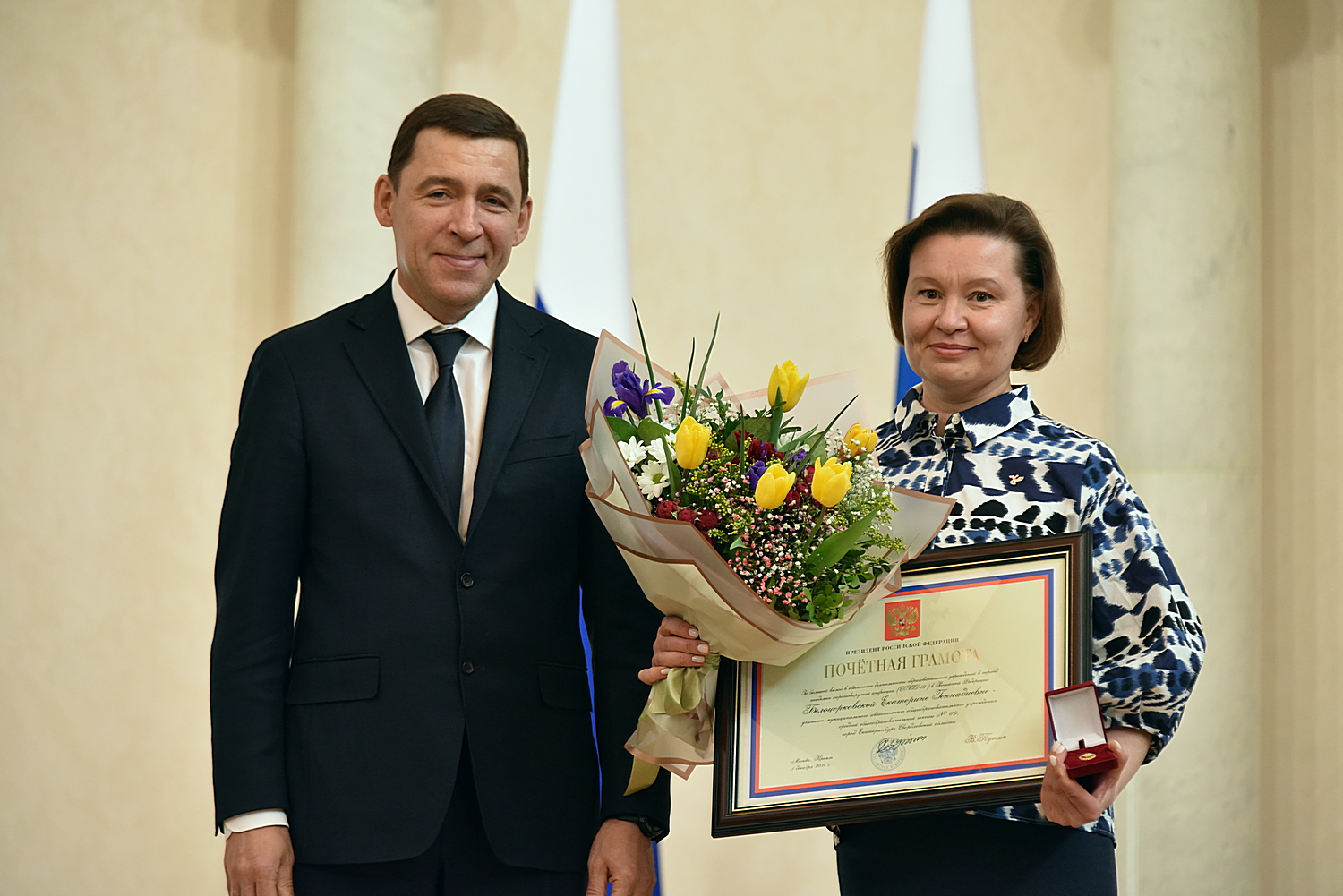 Трое уральцев получили награды Президента РФ. В частности, Почетную грамоту главы государства получила учитель средней общеобразовательной школы № 69 Екатеринбурга Екатерина Белоцерковская.