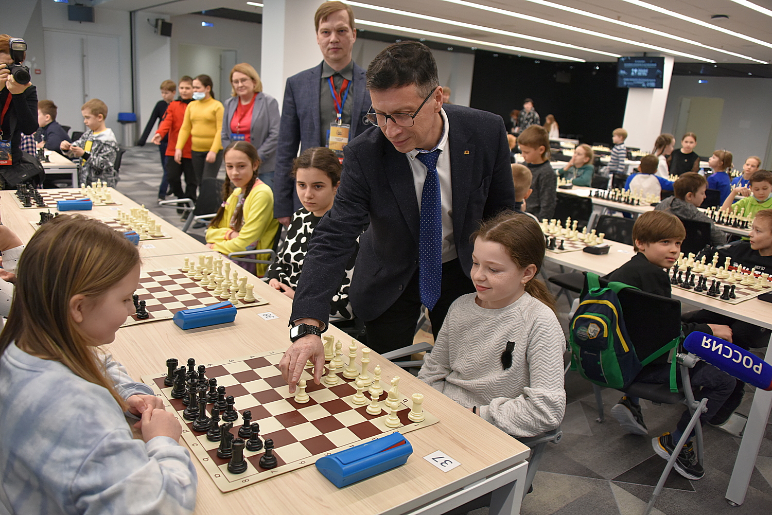 Юных шахматистов напутствовал гроссмейстер Александр Злочевский и министр спорта региона Леонид Рапопорт.