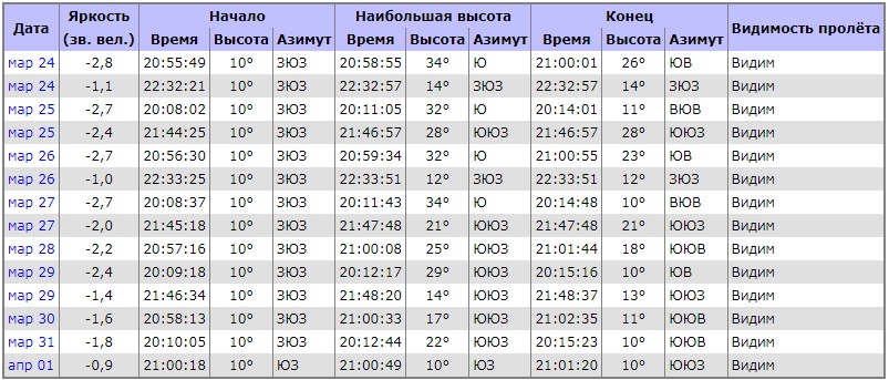 Станция поднимается до высоты 34 градусов и будет виден ее блеск. Она пролетит пояс Ориона – один из красивейших созвездий зимы и начала весны.