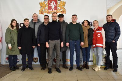 Пункт приема гуманитарной помощи работает на базе Дома добровольцев (улица Крылова, 2) в Екатеринбурге. Активисты принимают наборы с вещами, одеждой, лекарствами, продуктами длительного хранения. Сформированные партии отправляют в приграничные с Донбассом регионы, где организованы пункты временного размещения вынужденных переселенцев.