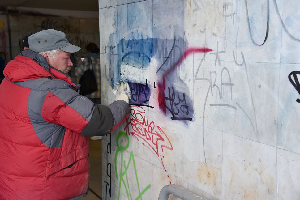 «Например, вчера мы привели в порядок один из подземных переходов города, а сегодня снова появились надписи. Мы оттираем рисунки различными способами. Надписи на штукатурке мы закрашиваем. На гранитной поверхности используем химию. К сожалению, люди, которые красят, не понимают, насколько тяжело и сложно убирать эти «художества», – уточняет Артем Репин.