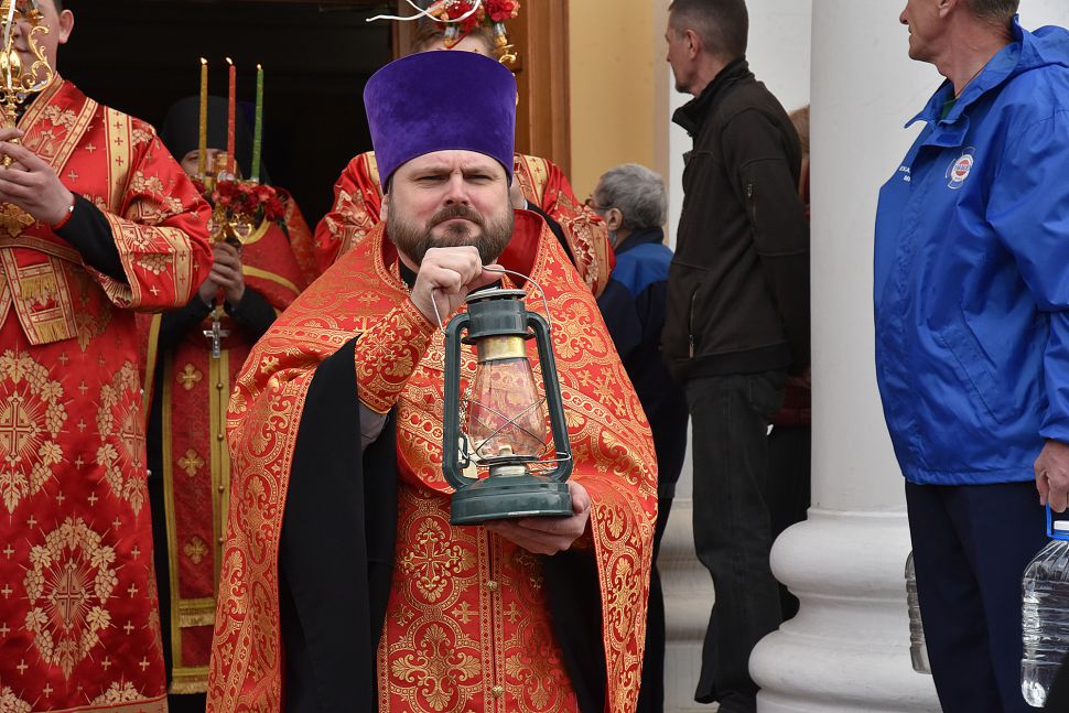 Во время Великой вечерни после крестного хода православные верующие могли получить Благодатный огонь.